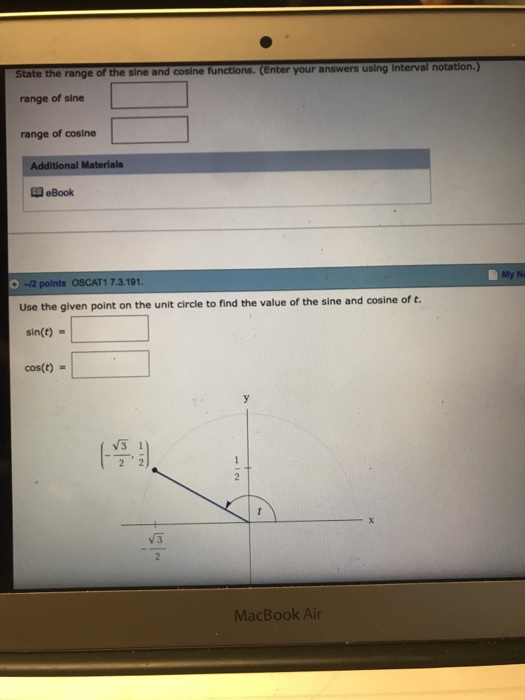 Is in the right quadrant but written incorrectly sin 1sin 9ˇ 5. Enter your answers using interval notation domain of sine domain o. Enter the domain in interval notation f x 1 in x 7 derivative f x domain need help.