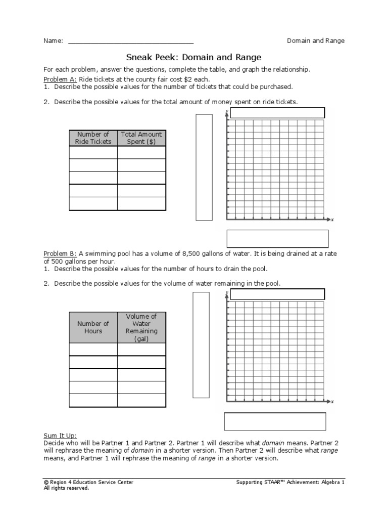 Problem solving - use acquired knowledge to identify the domain and range of functions. Unit 1 Imagine the possibilities. Some of the worksheets displayed are Domain and range work answer key Production possibilities curve tradeoffs Imagine your possibilities community and corporate Complex numbers and powers of i Teaching playwriting in schools National aeronautics and space administration Engineering our community stem challenges and activity This 15 minute exercise includes two components.